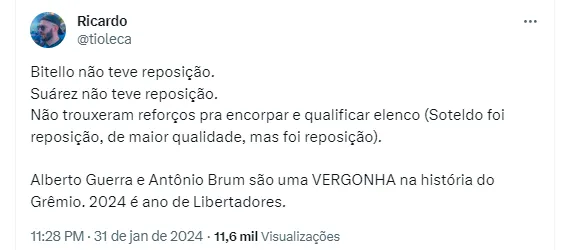 Renato Portaluppi, treinador do Clube Gaúcho, inclusive, vem comunicando à imprensa que a equipe está trabalhando para reforçar o elenco em breve. No entanto, ele acabou não revelando nomes.