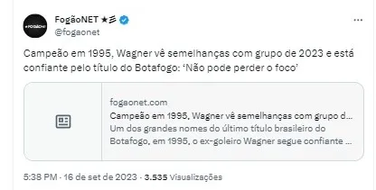 – O Wagner livrou o Botafogo do rebaixamento em 99, 2000 e 2001. E deu o título em 95. Por isso que falo que para mim é pouco valorizado, outro tempo, outra época, o processo de final de carreira não foi tão respeitoso com ele. Os torcedores jovens hoje não lembram tanto do Wagner, só quando veem o jogo de 95, mas o Wagner de 94, 95, quando virou titular e foi campeão brasileiro até sair do Botafogo era o principal jogador independentemente de quem estivesse ali – lembrou.