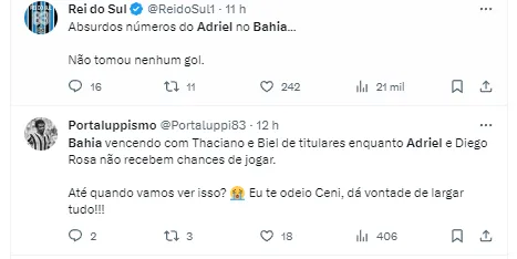 Adriel pertence ao Grêmio, onde tem contrato até o fim de 2024, e está emprestado ao Bahia até o meio do próximo ano. Ele chegou ao Clube nordestino na última janela de transferências e ainda não estreou.