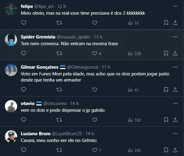 Dito isso, por mais que o atual jogador do Boca Juniors (ARG) seja amplamente mais conhecido e tenha tido uma carreira de sucesso, o torcedor do Imortal tem dúvidas sobre qual nome seria mais útil.
