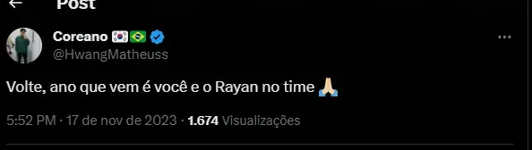 Em entrevista ao Charla Podcast, o atacante disse que pensa em retornar ao Vasco algum dia e ainda imaginou realizando grandes campanhas no Cruzmaltino, especialmente em uma Libertadores ou Mundial.