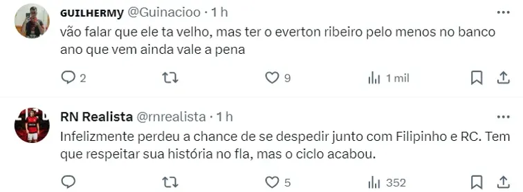Aos 34 anos, o meia já externou que só abrirá conversas com outros clubes se não chegar a um acordo com o Flamengo, já que a intenção dele é permanecer na cidade maravilhosa. O representante do jogador tem uma reunião marcada com a diretoria da equipe carioca onde irá definir o futuro.