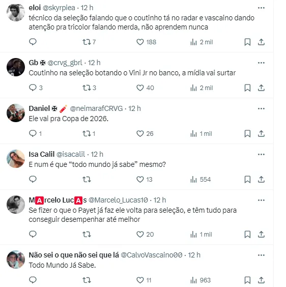 Reações da torcida sobre o negócio