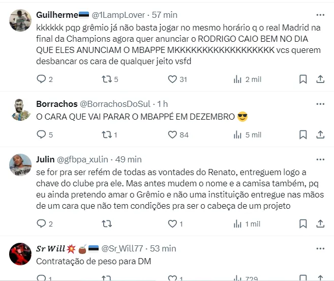 Segundo o site oficial do Grêmio, Rodrigo Caio desembarcou na última semana no CT Gremista para realizar exames médicos e assinar o contrato. Ainda não há previsão de estreia.