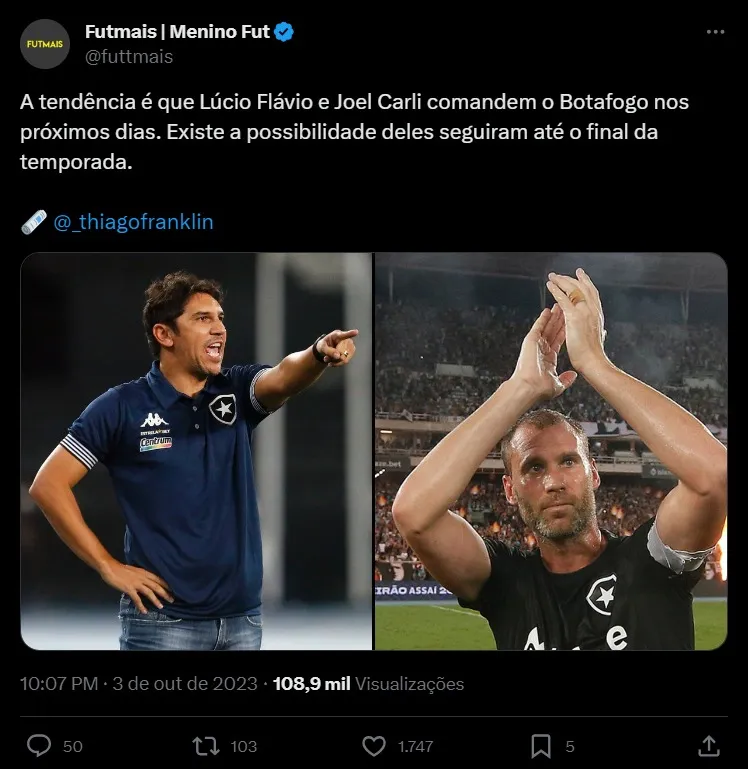 O departamento de futebol acredita que a permanência da dupla no comando do Botafogo pode servir como uma motivação a mais para a conquista do título Brasileiro. Lúcio Flávio é avaliado internamente como um profissional que tem vasto conhecimento de futebol. Já Jorge Carli, é visto como um grande líder e que tem uma capacidade imensa de gerir o grupo, que nesse momento precisa de união para espantar a má fase.