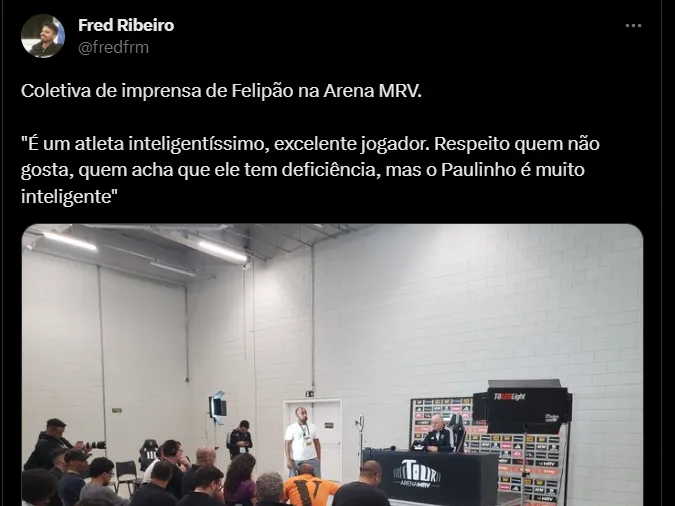 “É um atleta inteligentíssimo, excelente jogador. Respeito quem não gosta, quem acha que ele tem deficiência, mas o Paulinho é muito inteligente”, iniciou Felipão antes de completar: “O Atlético está jogando bem há alguns jogos. Algumas situações de gol que não vínhamos aproveitando”, acrescentou o pentacampeão.