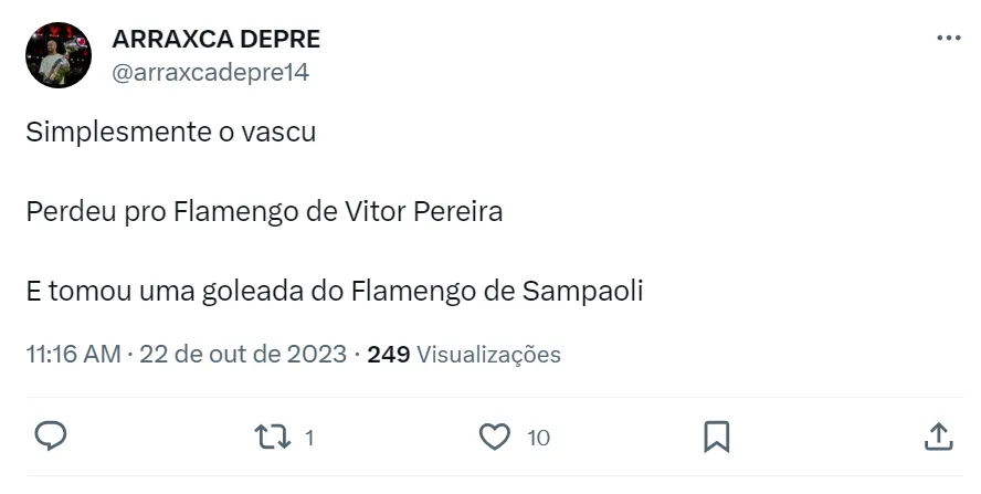 “Sampaoli foi uma decepção para mim no Flamengo. Mas é o seguinte: ele é um cara insuportável no dia a dia. Ele não cumprimenta ninguém, só fala com os auxiliares dele. Ele é um cara muito difícil de lidar no dia a dia”, disse Ricardinho Martins. Tanto por Santos como Flamengo, Jorge Sampaoli não ganhou nem um título. Já no Atlético-MG, ele conquistou o Campeonato Mineiro.