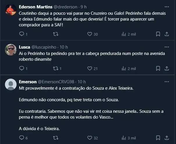Entretanto, de acordo com informações trazidas por Edmundo no ‘Canal Mundo Ed’, o presidente Pedrinho não gostou nada das exigências feitas por Philippe Coutinho para fechar contrato com o Vasco.