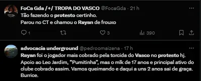 Alguns torcedores vascaínos foram cobrar jogadores do elenco pela derrota. Entre os jogadores cobrados, um que chamou atenção foi o jovem Rayan. Ele não tem nem 18 anos ainda e já foi alvo da torcida vascaína.