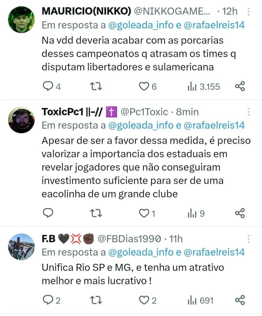 Além dos paulistas, cariocas e gaúchos também parecem resistir a mudança. Vale destacar, no entanto, que alguns estaduais já acontecem no formato de 12 datas disponíveis, um deles é o Campeonato Mineiro.
