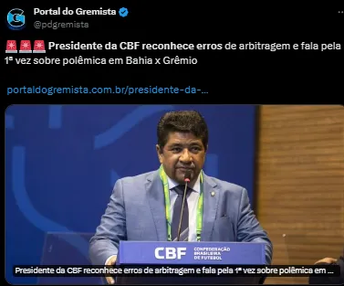 “Vamos procurar trabalhar e tirar proveito dessas críticas que têm acontecido com relação à arbitragem”, finalizou Ednaldo Rodrigues.