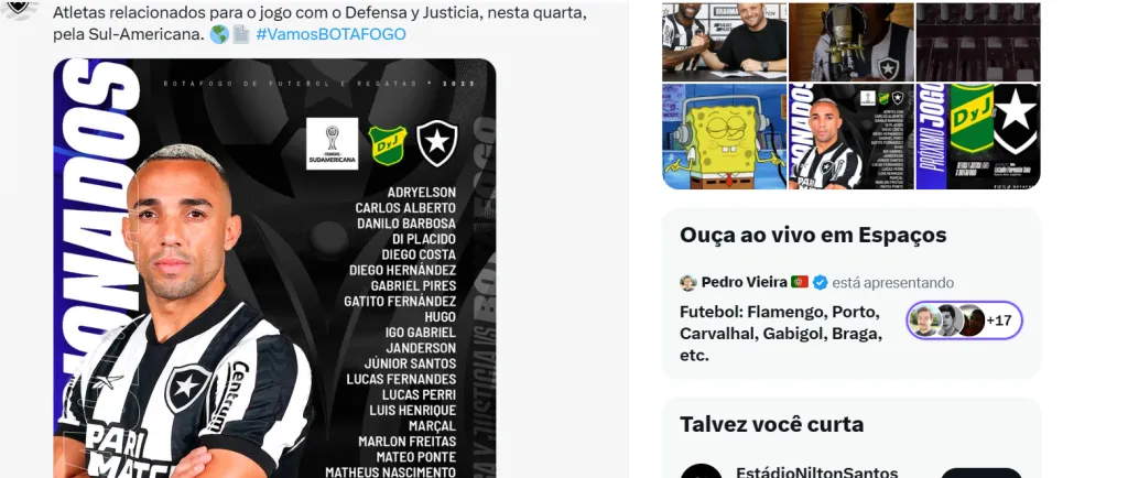Há pouco, o Botafogo divulgou a lista de relacionados no embarque à Argentina com algumas surpresas. Eduardo, JP Galvão e Victor Sá foram ausências em viagem a Buenos Aires. Por outro lado, Marçal, recuperado de lesão, viajou e está à disposição do técnico Bruno Lage.