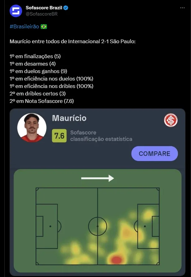 Em seu retorno ao Internacional, Eduardo Coudet encontrou um elenco tão qualificado quanto o da primeira passagem e já colocou o time na semifinal da Libertadores, onde enfrentará o Fluminense. E um dos jogadores mais queridos é Maurício, que teve grande atuação no jogo contra o São Paulo. Confira os números do SofaScore.
