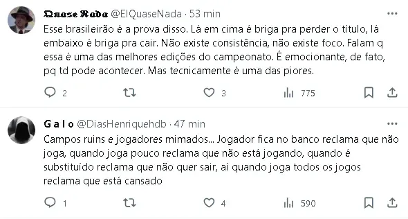 Apesar das críticas, Coudet está focado em preparar o Internacional para os jogos finais do Brasileirão. A equipe gaúcha enfrentará o Cuiabá na quarta-feira, pela 36ª rodada, na Arena Pantanal.