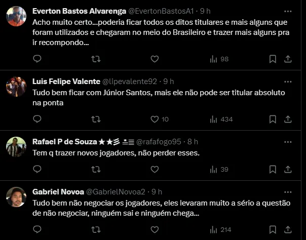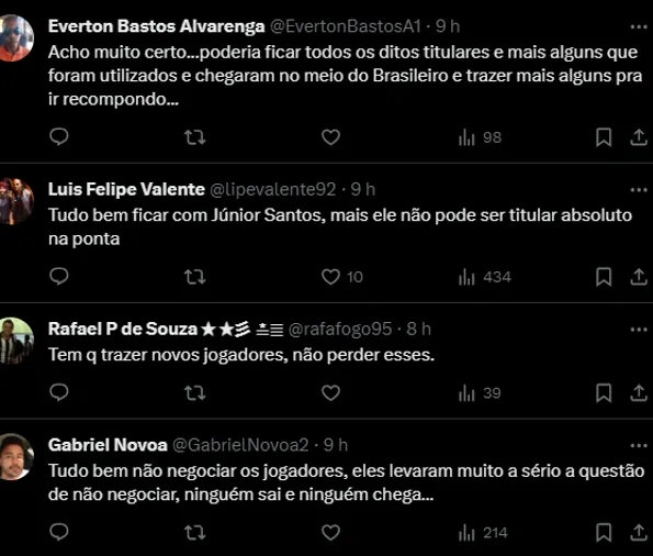 No entanto, a diretoria do Botafogo não pretende se desfazer do trio, já que todos foram titulares da equipe em algum momento na temporada e são importantes para o planejamento.