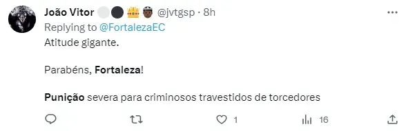 Em uma ação relacionada, o Fortaleza divulgou oficialmente que está encerrando qualquer vínculo ou colaboração com as torcidas organizadas envolvidas nos episódios de violência durante o confronto contra o Corinthians pela Copa Sul-Americana.
