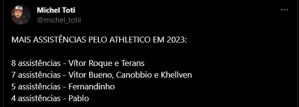 Na última rodada, por exemplo, a vitória por 3 a 0 diante do Flamengo deu mais confiança ao time, mesmo com as ausências importantes de Bento, Fernandinho, Canobbio e Vitor Roque. Este último, inclusive, vem sendo o grande destaque do time em 2023 e já está negociado com o Barcelona (ESP). Ele desbancou Pablo e assumiu a titularidade no início do ano, diferente do que aconteceu em 2022.