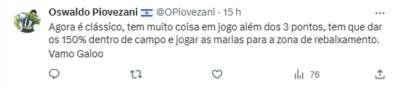 O Atlético Mineiro comandado por Felipão vem de uma vitória importantíssima fora de casa em cima do Palmeiras pelo placar de 2 a 0 e chega animado para esse clássico em seus domínios. Por outro lado, o rival vem de uma fase conturbada na competição e está apenas um ponto de entrar na zona de rebaixamento, com 31.
