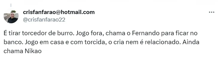 Torcida do Cruzeiro reclama de Nikão relacionado