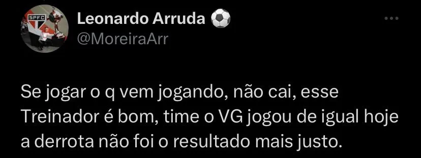 “Me sinto muito orgulhoso de estar no Vasco, que tem o público que tem. E também pelos jogadores, pelo nível de intensidade, que têm competido. E sobretudo como estamos competindo, a nível nacional, contra a equipe que tem os melhores jogadores, um dos melhores treinadores, e competimos. Fizemos uma partida intensa. Tivemos chances para ganhar, mas creio que o resultado justo seria um empate. As duas equipes criaram. Para o espetáculo, foi um bom jogo”, disse.