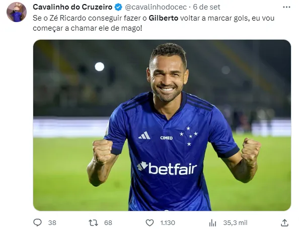 “O Gilberto, se a gente fizer um recorte para um tempo atrás, metade ou mais de todas as equipes da Série A estariam buscando o Gilberto para ser o centroavante. É um jogador que sabe fazer gol, tem faro de gol“, afirmou Zé Ricardo.