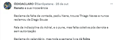 O assunto ganhou mais repercussão após ele não aparecer na coletiva após a derrota contra o Internacional e do momento ruim da equipe. Antes da vitória sobre o Flamengo, foi criticado pela fala sobre “não ter tempo para treinar”.