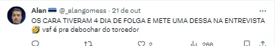 “Uma vez eu disse, se não ganhar, não vai ter folga. Nós ganhamos dois jogos seguidos, ficamos uma semana fora e dei quatro dias de folga. Quando falei que não tínhamos tempo para treinar, quis dizer entre um jogo e outro”.