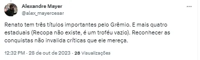 “Jogamos hoje, amanhã e sexta recuperamos jogadores e viaja para jogar no sábado. Aí eu pergunto para os dois, três: o que eles entendem? O que eles querem falar que o Grêmio treina pouco, queria que fosse ao CT”, finalizou Renato.