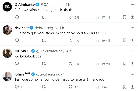 Com o Cruzeiro como oponente do Vasco na próxima quarta-feira, um jogador vascaíno está particularmente atento a esta partida. Em uma postagem nas redes sociais, Rossi recorreu a um velho amigo para expressar seu desejo pela vitória do clube cearense.
