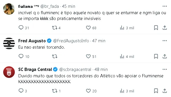 Keno ressaltou que recebe muitas mensagens de apoio da torcida atleticana e lembrou que, após conquistar a Libertadores, recebeu mensagens de torcedores afirmando que apoiariam tanto ele quanto o Fluminense no Mundial.