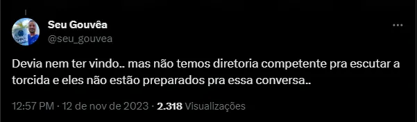 A informação é que são debatidos possíveis nomes para suceder o atual treinador do Cruzeiro. A intenção é que, caso seja definida a demissão de Zé Ricardo, venha um profissional que continue no comando da equipe em 2024.