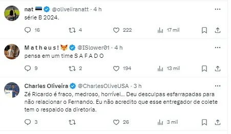 O Cruzeiro agora se vê em uma pressão ainda maior e precisa buscar reação para não retornar para a Série B. A Raposa tem confronto com o Coritiba no próximo sábado (11).