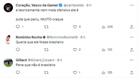 Contudo, diante do bom desempenho de Douglas Luiz, a torcida vascaína reagiu ao atual momento do jogador, alguns pediram para que o jogador voltasse ao Cruzmaltino. Outros foram irônicos com relação ao atleta não aparecer nas convocações de Fernando Diniz, para os jogos da Seleção Brasileira. Alguns outros comentários também elogiam o ex-cruzmaltino.