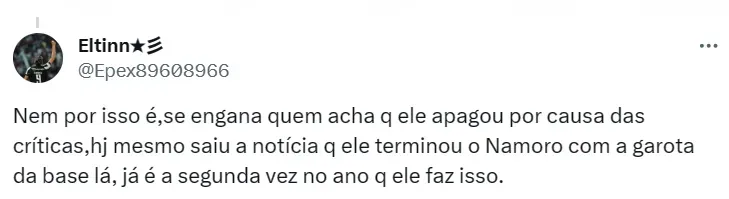 Depois de receber muitas críticas, Segovinha resolveu apagar todas as publicações feitas no Instagram, retirando inclusive a foto de perfil. A conta segue aberta, mas sem nada publicado.