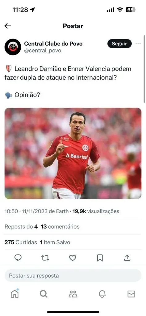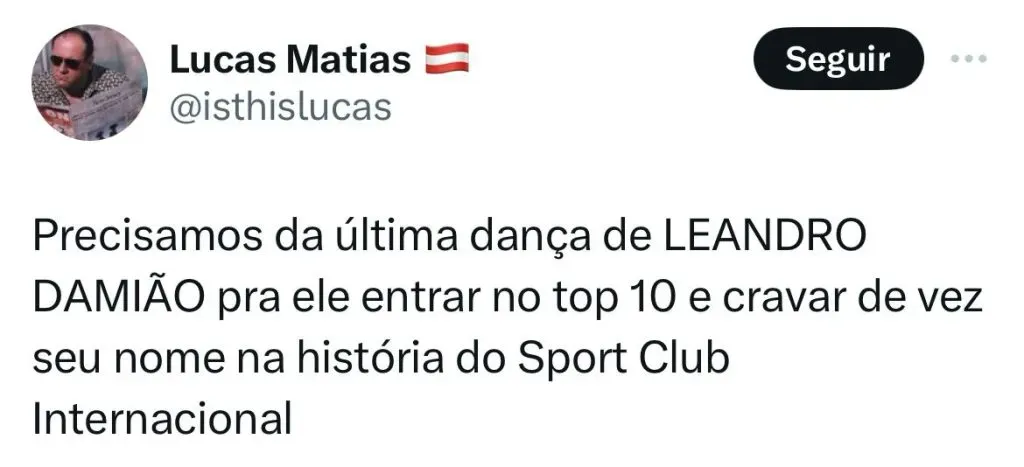 A última passagem de Leandro Damião pelo Beira-Rio aconteceu entre os anos de 2017 e 2018. O centroavante já disse a pessoas mais próximas que sua prioridade caso retorne ao Brasil é voltar ao Colorado.