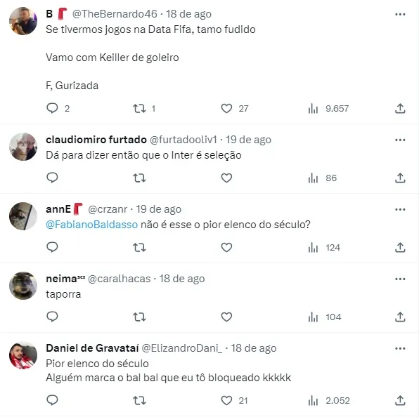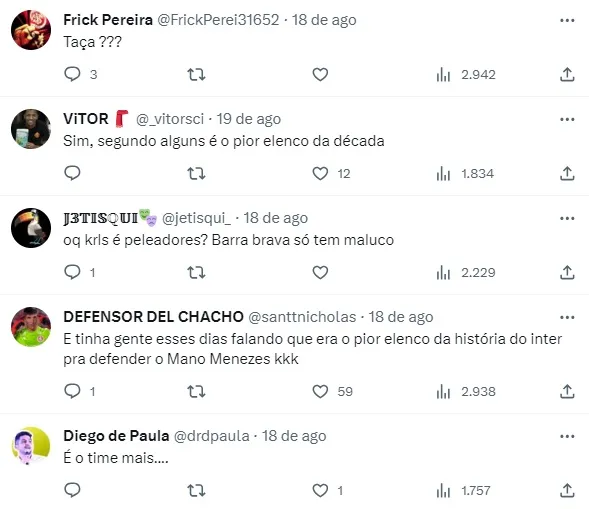 Com a eliminação, o Colorado agora foca no Campeonato Brasileiro. A saber, o objetivo mais realista é fugir do rebaixamento e, quem sabe, conquistar uma vaga na Copa Sul-Americana de 2024. No momento, a equipe está na 12ª posição, com 32 pontos conquistados, apenas 05 a mais do que o Vasco, primeiro time na zona de descenso.