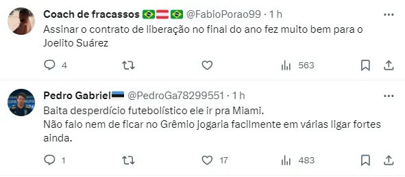A expectativa é que Suárez deixe o Grêmio ao final de 2023, com rumores de que ele tem um contrato encaminhado com o Inter Miami para o próximo ano, onde poderia reeditar a parceria com Lionel Messi.