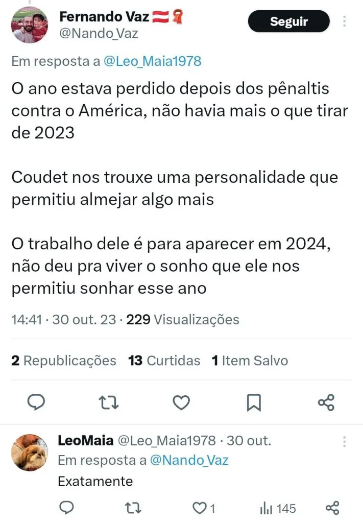 Vale recordar que Coudet retornou ao Beira-Rio três anos depois de ter uma saída conturbada. O treinador deixou a equipe após conflito com a diretoria do Clube devido a falta de reforços. Na ocasião o Inter estava na liderança do Brasileirão e classificado para as oitavas de final da Libertadores e às quartas da Copa do Brasil.