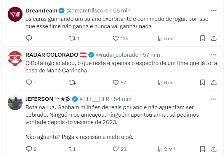 “Você tem que ter mais jogadores de um nível compatível para manter o Botafogo em alto nível. O futebol tem códigos e temos que respeitar. A gente sabe quando o atleta está no limite e precisa ter um descanso, sair da zona de alvo”, completou.