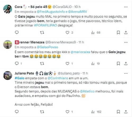 O Atlético-MG visitou o Corinthians na Neo Química Arena e, mesmo saindo atrás do placar, conseguiu o empate e chegou, inclusive, perto da virada. Após o apito final, Mano Menezes deu entrevista, citando os mineiros em alguns momentos: