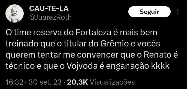 “Eles (os reservas) responderam como eu esperava. Todos os dias treinam em boa forma. Mas faltou um gol a mais. Contra esse tipo de adversário, temos que fazer um gol a mais, porque uma situação pode complicar a gente, como aconteceu”, finalizou Vojvoda destacando a força do Grêmio.