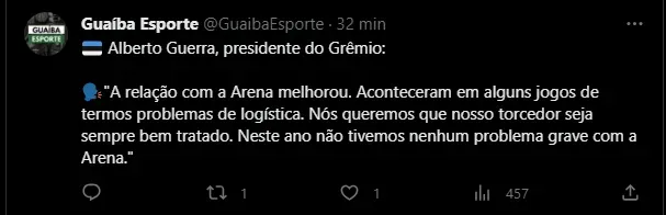 Por outro lado, um detalhe que ainda não está acertado para o ano que vem é a permanência de Portaluppi. Contratado na reta final da Série B de 2022, seu contrato com o Clube vai até dezembro de 2023. Em entrevista à Guaíba Esporte, o presidente Alberto Guerra deu uma declaração sobre o tema e chamou atenção. Confira: