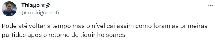 Apesar disso, seu possível retorno dá esperança aos torcedores. Dependendo apenas de si para ser campeão do Brasileirão 2023, o Botafogo precisa voltar a vencer para garantir a taça.