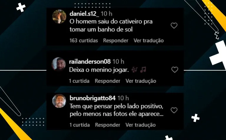 Os torcedores não pouparam críticas e ironias em relação à presença de Rômulo no treino. Comentários como “Soltaram o Rômulo do cativeiro?” e “Dia de banho de sol, né Romulo?”. Outros fãs expressaram frustração com a falta de oportunidades para Rômulo: “Coitado, Abel odeia ele, só pode”; “Bota o cara pra jogar, caramba.”