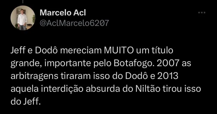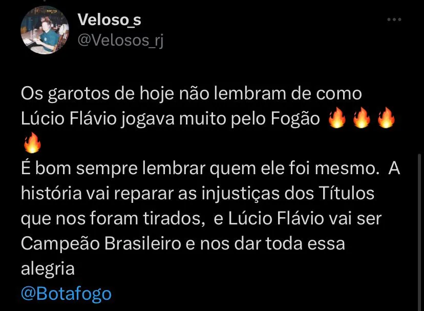 “O Lucio sai na frente em relação a ter outro técnico que não conhece a história do Botafogo. Que não viveu o que ele viveu como jogador e nesse período que está na comissão. Esse conhecimento faz ele estar à frente de uma possível contratação. Ele conhece os jogadores mais jovens, e tem um olhar especial para eles. O respeito que os jogadores têm pela história dele no Botafogo. O time já tem uma estrutura, e não tem muito o que mudar. Ele é o técnico perfeito para conduzir o clube a esse título tão sonhado”, finalizou.