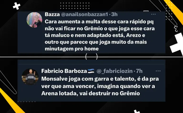 Elogios da torcida do Grêmio