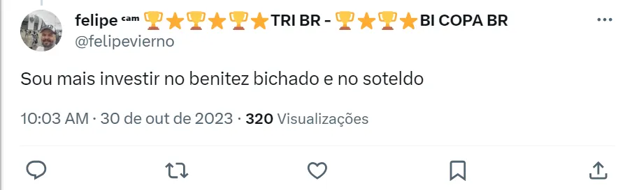 “A gente também acredita que possa chegar alguma coisa nesse sentido, mas vai ter que ser um investimento interessante para o clube. Mas não adianta vir com proposta baixa”, disse o dirigente para Jorge Nicola.