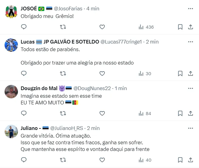 Nesta quarta-feira (29), o Grêmio recebeu o The Strongest, no estádio Couto Pereira, em jogo atrasado pela Libertadores, e venceu a equipe boliviana por 4 a 0, com gols de Soteldo, João Pedro, Galdino e Gustavo Nunes.