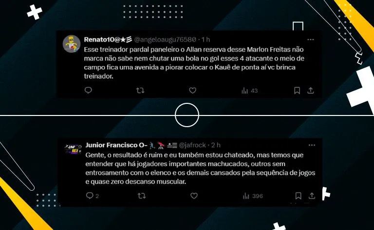 A hashtag #ForaArturJorge foi uma das mais comentadas, com diferenças críticas sobre a formação e as substituições feitas durante a partida. Uma das principais queixas foi direcionada à escalação e à performance dos jogadores. “Esse treinador não sabe o que está fazendo!”