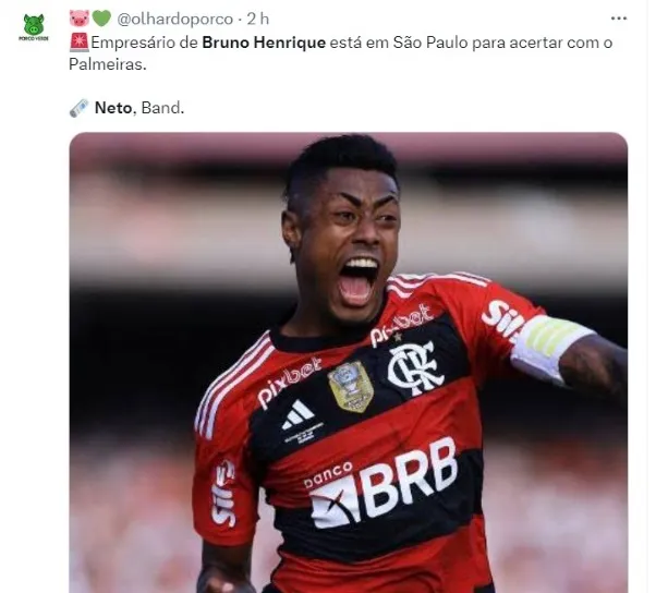 “Pelas informações que tenho é que o empresário do Bruno Henrique vem sábado para fechar com o Palmeiras”, disse Neto. Convidado do programa, Jorge Nicola deu mais informações sobre o futuro de Bruno Henrique, trazendo ainda mais detalhes de toda a situação.